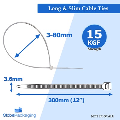 100 x Natural (Clear) Cable Zip Ties 300mm x 3.6mm (15kgf)
