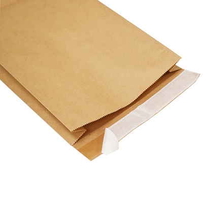 A pack of 100 strong high quality eco-friendly gusseted natural brown kraft paper peel & seal mailing bags, size 260x410x70mm (10x16x3") with 'peel & seel' lip, 100gsm in thickness.