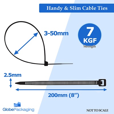15,000 x Black Cable Zip Ties 200mm x 2.5mm (7kgf)
