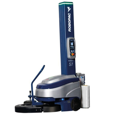 The Robopac Robot S7 PG3S machine is designed for use with power-pre 250% or 300% elongation machine pallet stretch film.